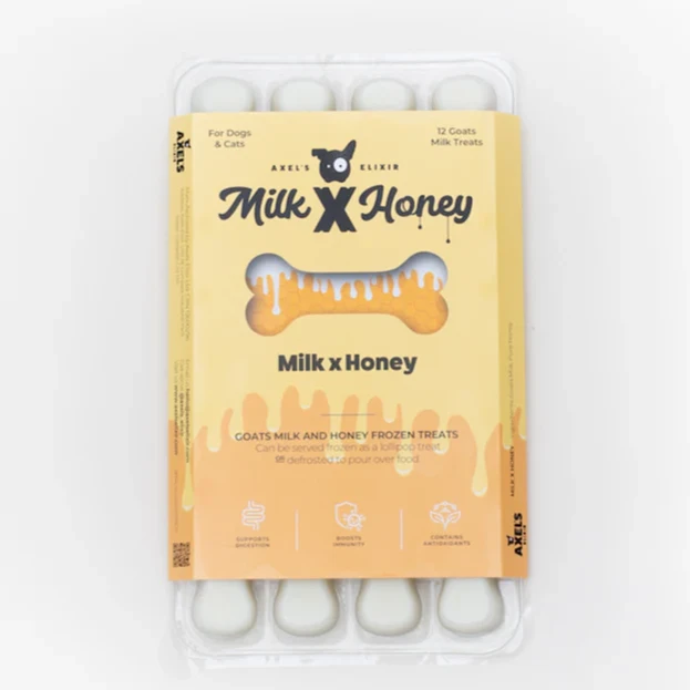Axel’s Milk and Honey is fun, functional and is great for supporting digestive wellness and immune health whilst leaving your doggy (or kitty) wanting more!