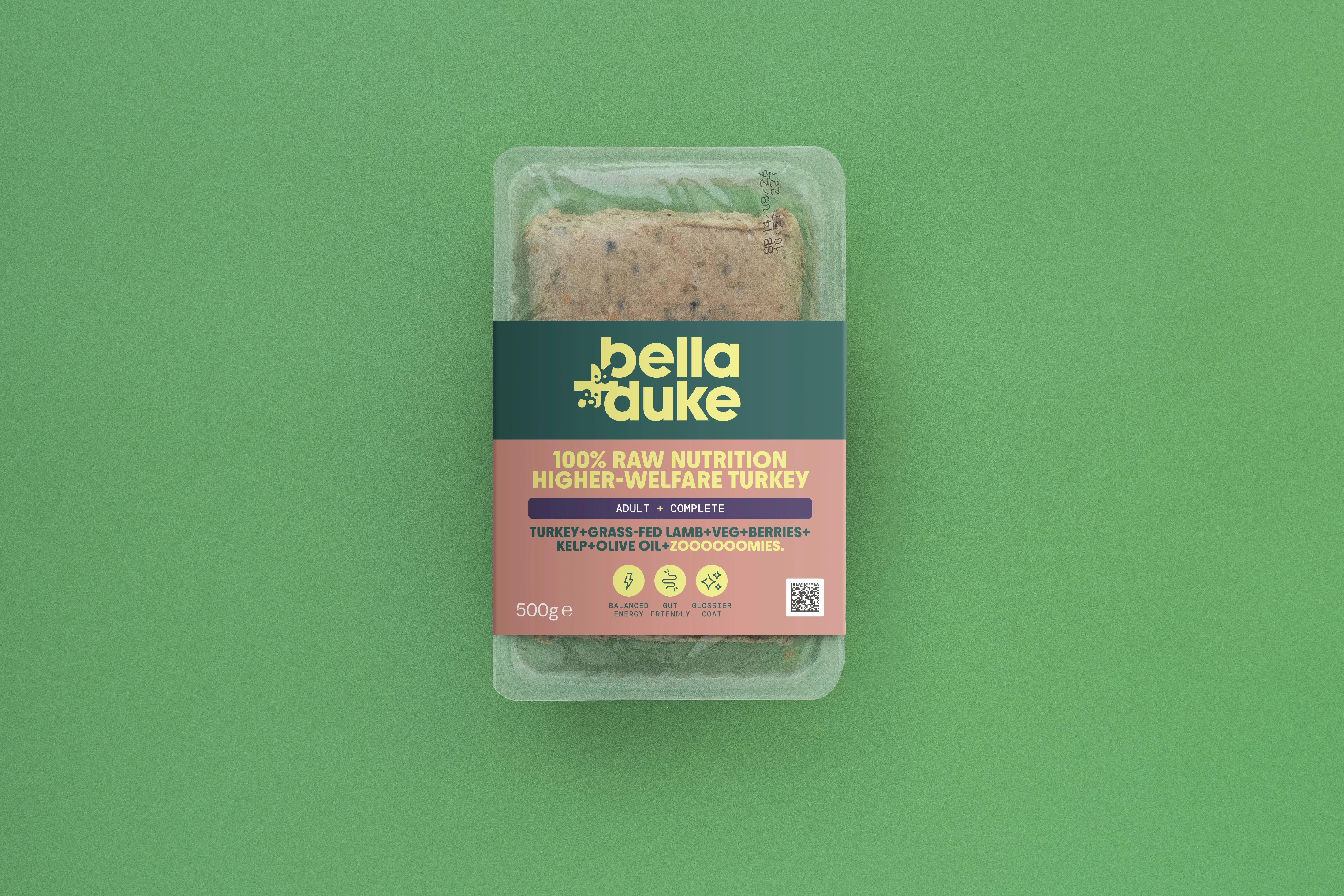 Bella and Duke Higher Welfare Turkey Adult Complete Raw with two energy packed proteins, turkey and nutrient dense lamb, fuel pooches energy levels for walkies, belly rubs, and their fave zoomies.
