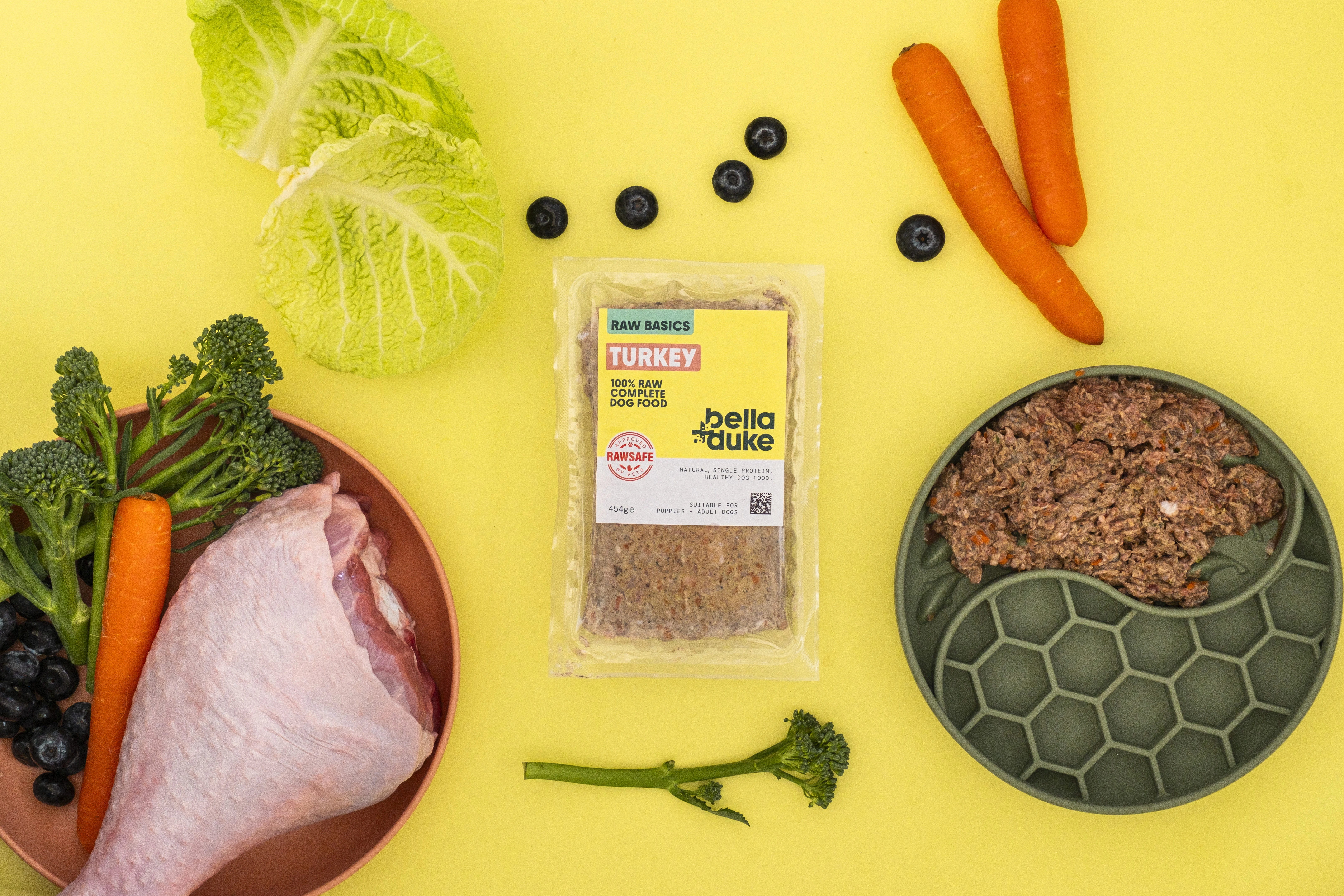 Bella and Duke Raw Basics Turkey 454g, the Raw Basics range from Bella and Duke is a simplified, great value way to feed a complete and balanced raw diet without compromising on quality. Created for everyday feeding, it uses the same high quality ingredients, sourcing standards and safety processes as Bella and Duke’s premium meals, just with a more streamlined approach.