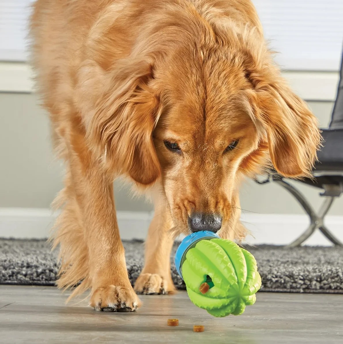 Place treats or kibble inside the cactus and encourage your dog to use its nose and paws to spin the cactus to access the treats inside as they spill out.