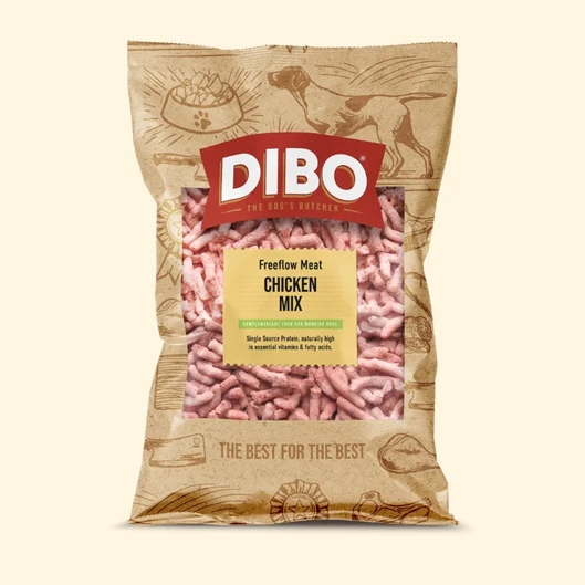 DIBO Complete Chicken Mix Mince 1kg is a single source protein, naturally high in essential vitamins and fatty acid. This single source protein recipe is made with the highest quality ingredients that contain a variety of essential nutrients. Chicken is a naturally lean source of protein, that is easily digestible. Chicken contains the essential amino acids needed to build and maintain strong muscles and support healthy skin and coats. It also contains vitamins B6 and Niacin which help maintain energy levels. Offal is rich in essential vitamins and minerals, including vitamin A which supports immunity and vitamin B for a healthy metabolism and energy production. The frozen mince is quicker to defrost than large raw cuts, easy to portion, and simple to serve as a complementary meal. Its tasty bite-sized pieces also make it perfect for smaller dogs to enjoy.