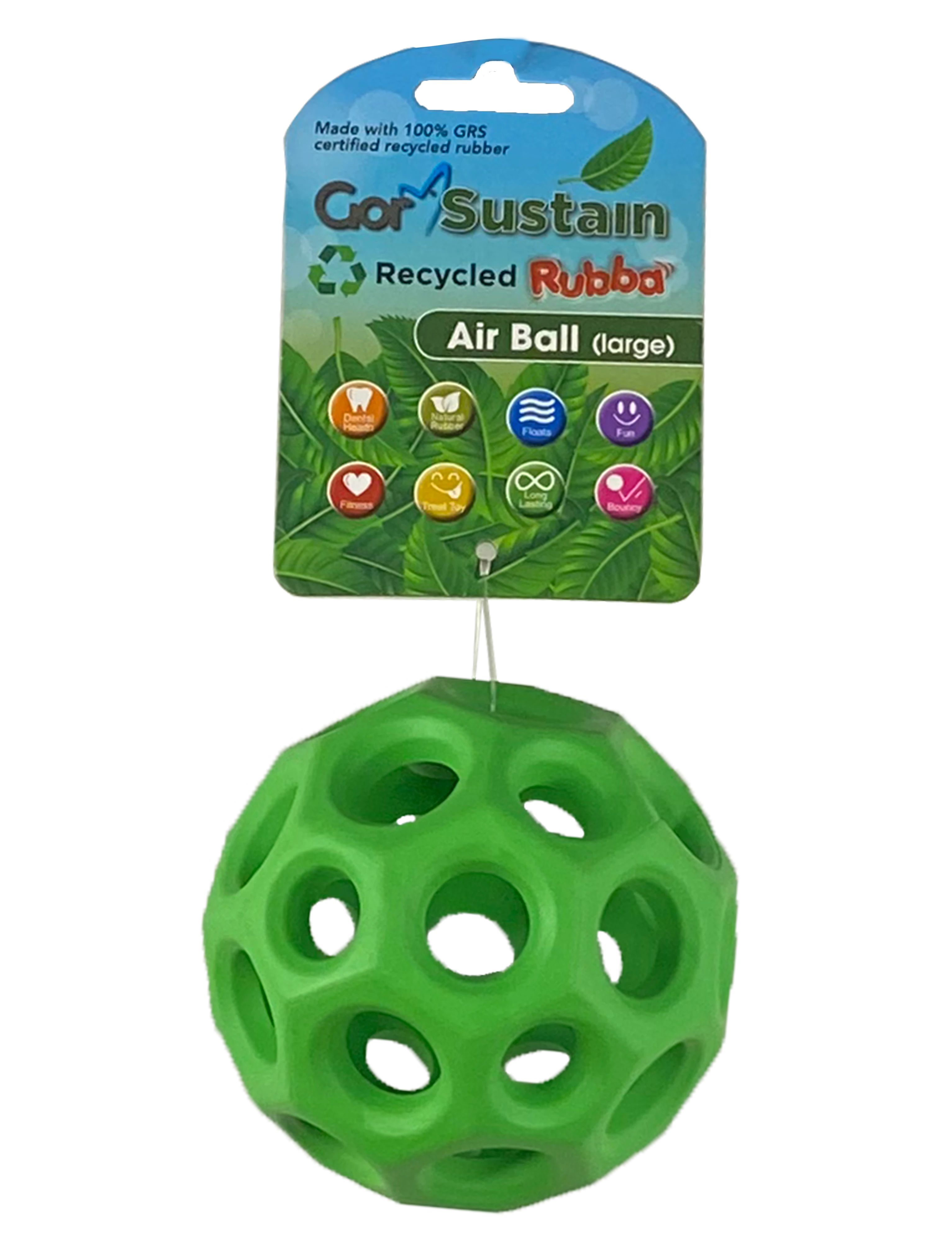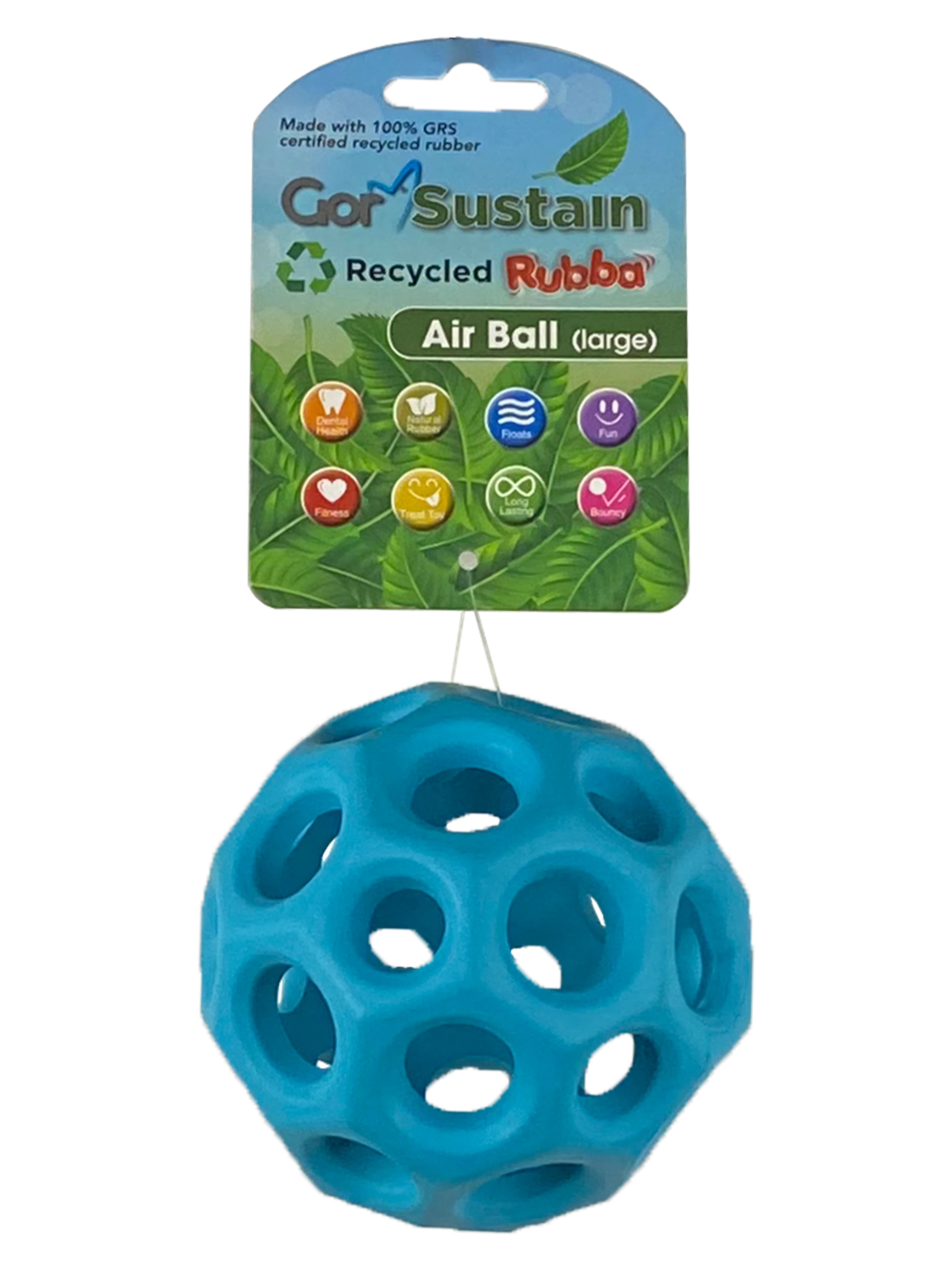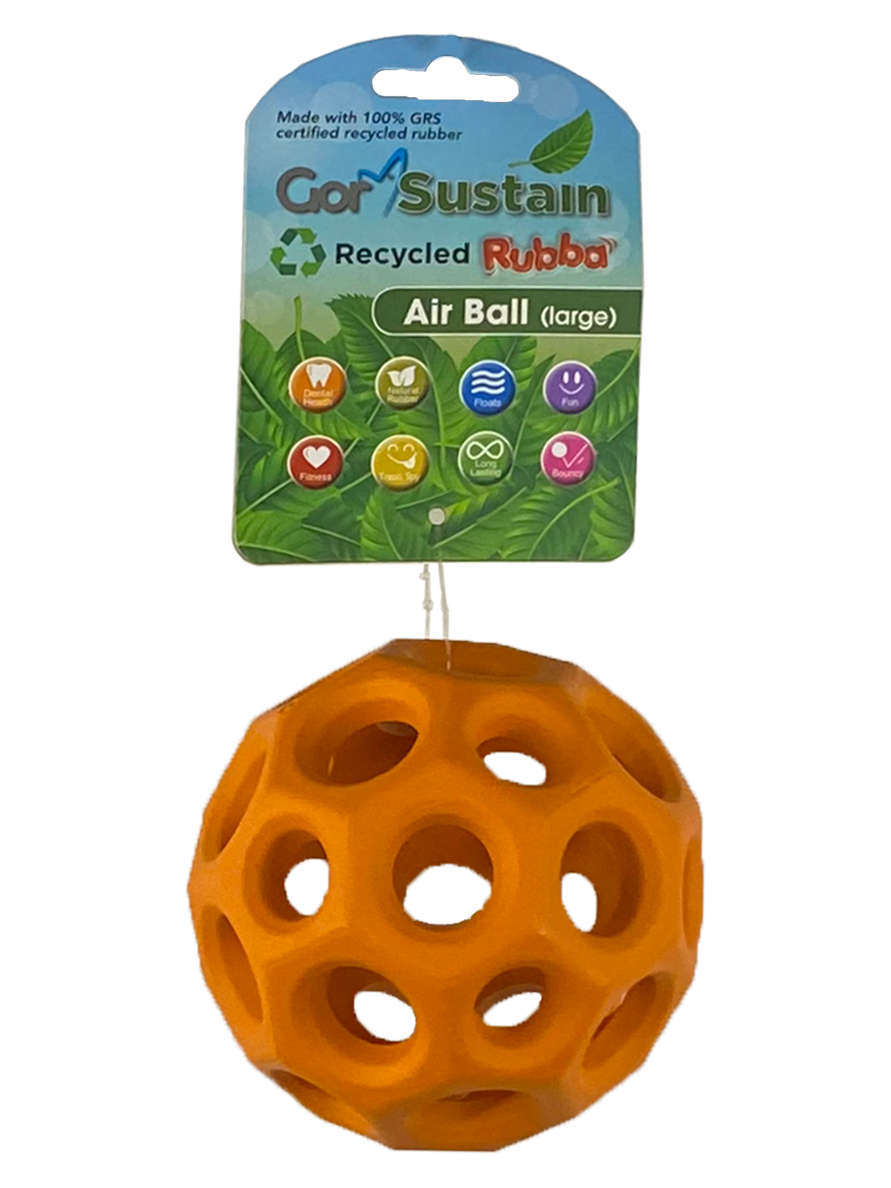 Gor Pets Gor Sustain Air Ball is the perfect choice for lightweight and bouncy play, combining sustainability with entertainment. Made from 100% GRS certified recycled rubber, this durable ball is designed for active dogs who love to chase and retrieve.