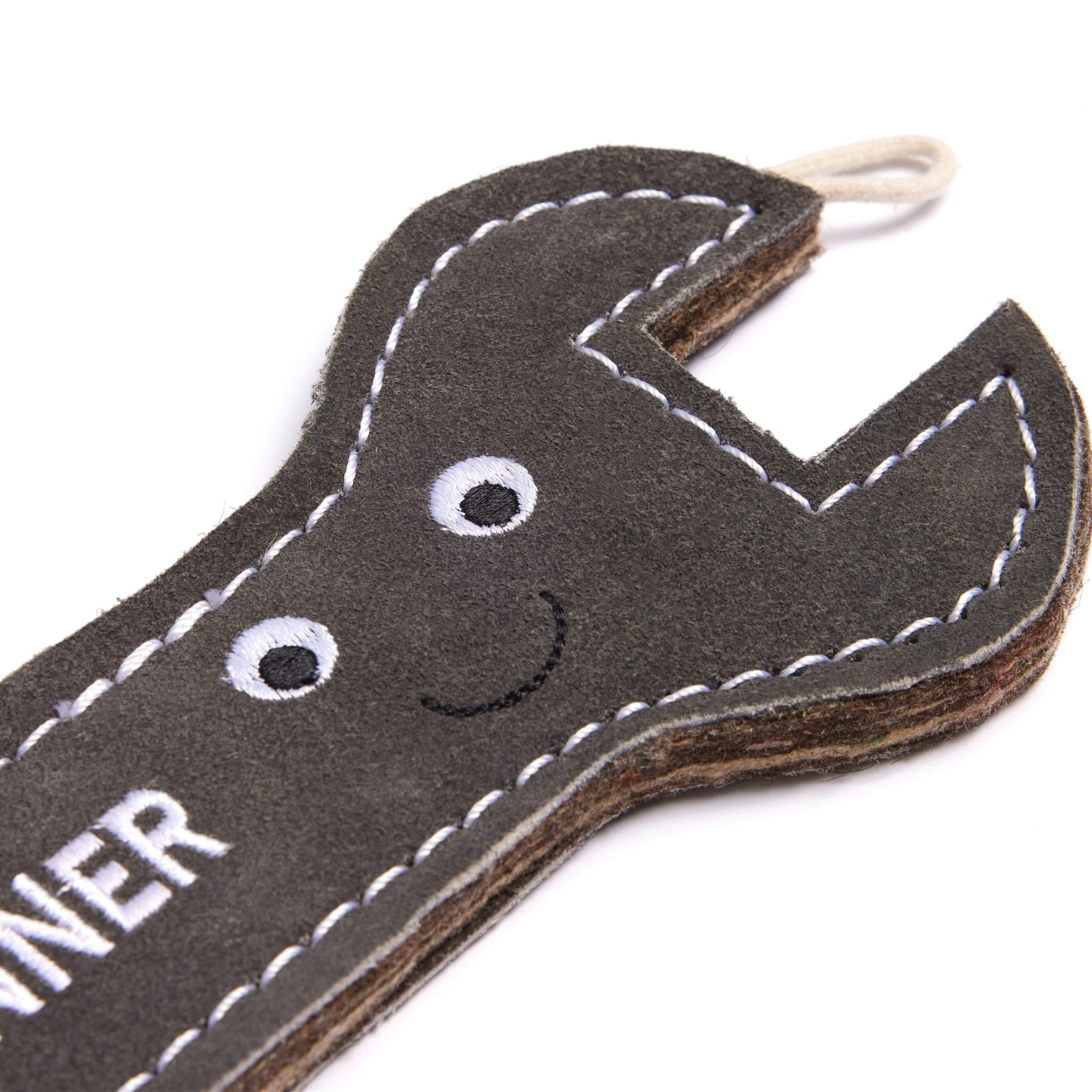 Green and Wild’s Stud the Spanner Eco Dog Toy this cheeky spanner is made from layers of compressed felt and stitched over with soft suede.