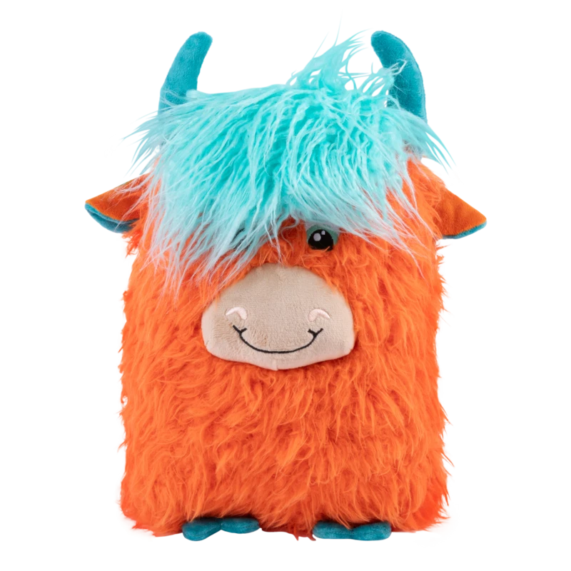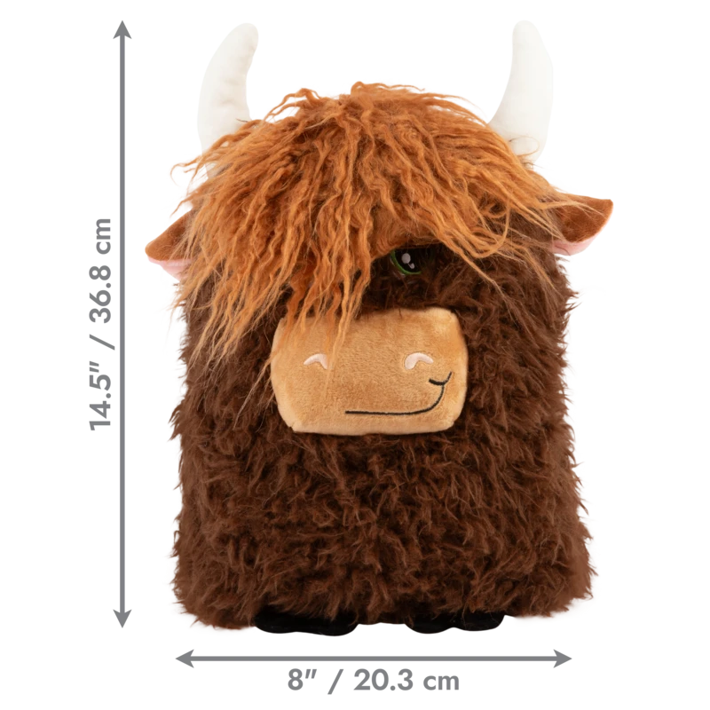 KONG Comfort Jumbo Highland Cow gives cool cow vibes with its wild shaggy fur and floppy hair swoop. A giant plush body with various fabric textures, 3 squeakers, and crinkle material inside each hoof and floppy hair, keeps dogs of all sizes entertained with multisensory features during playtime. When the party’s over, this cow’s laid back attitude is perfect for chilling and cuddling during naptime.