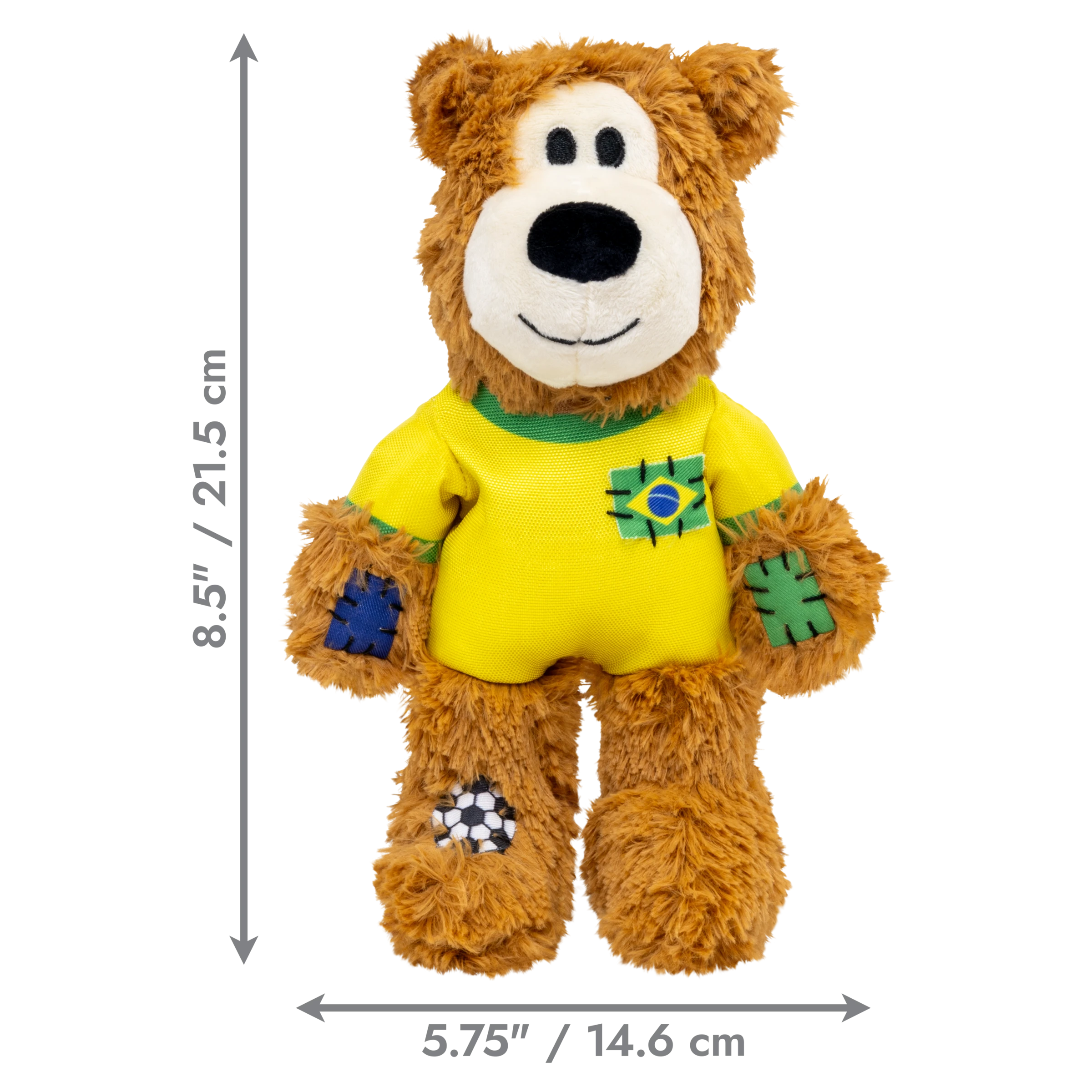 KONG Wild Knots Sport Bear is proud to represent its home country in its Limited Edition uniform. Aiming to take the dog park by storm in its playtime debut, Wild Knots Bear plays with six knots and a soft yet durable texture. Thanks to hours of training and its internal knotted rope, this toy withstands playful pulling and light chewing while catering to dogs' playful instincts to thrash, tug, and wrestle. Varied textures and a squeaker keep the fun going, but this plush pal is the perfect snuggle buddy when it's time for a post play recovery nap. Whether you're cheering for their team or allowing your dog to gnaw on the competition, Wild Knots Bear is the perfect teammate when it's time to play.