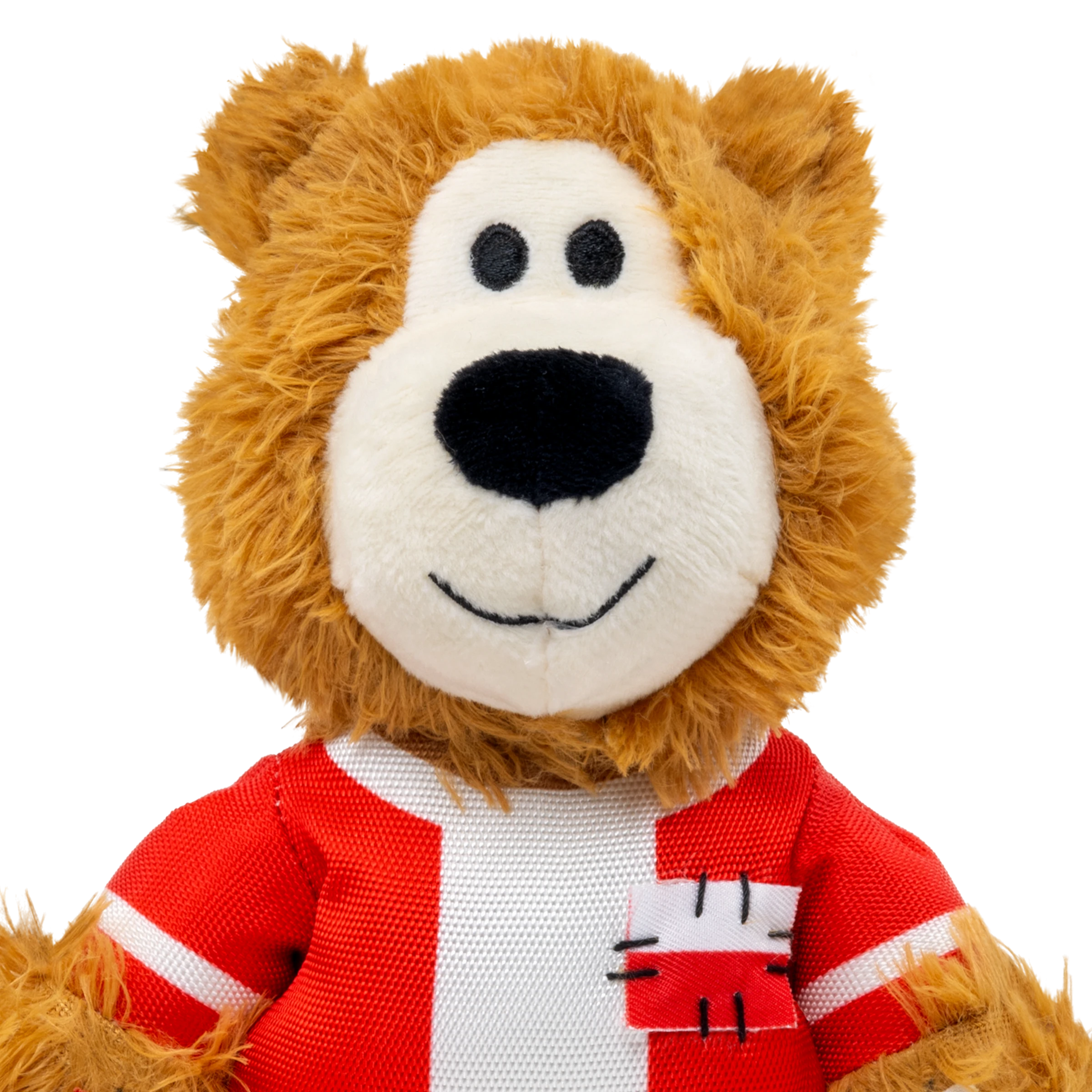 Wild Knots Bear is proud to represent its home country in a limited edition uniform. In its playtime debut, Wild Knots Bear will use its internal knotted rope and soft yet durable texture to withstand tugging and light chewing. Varied textures and a squeaker keep the fun going, but it's also a great snuggle buddy when it's time for a recovery nap.