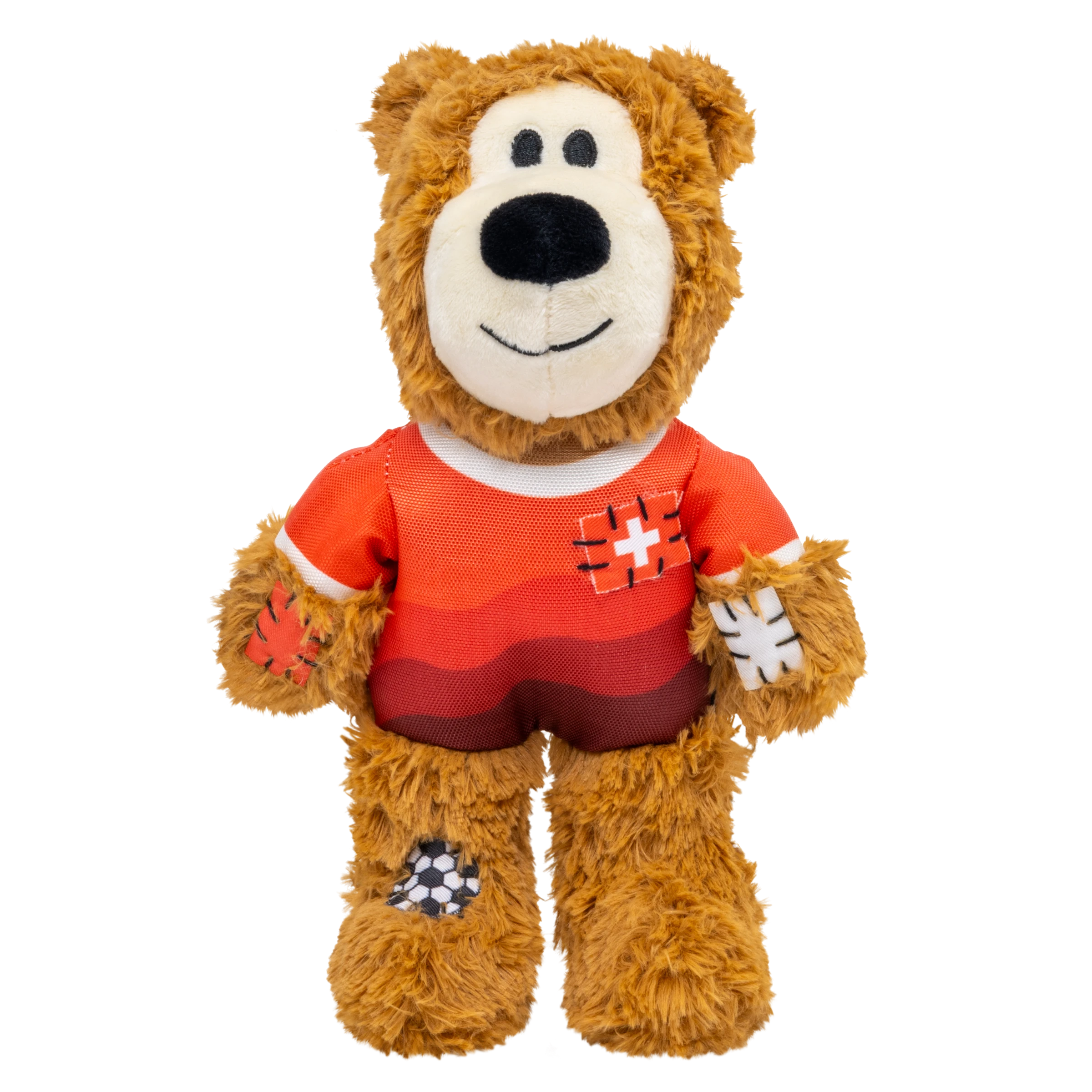 Wild Knots Bear is proud to represent its home country in a limited edition uniform. In its playtime debut, Wild Knots Bear will use its internal knotted rope and soft yet durable texture to withstand tugging and light chewing. Varied textures and a squeaker keep the fun going, but it's also a great snuggle buddy when it's time for a recovery nap.