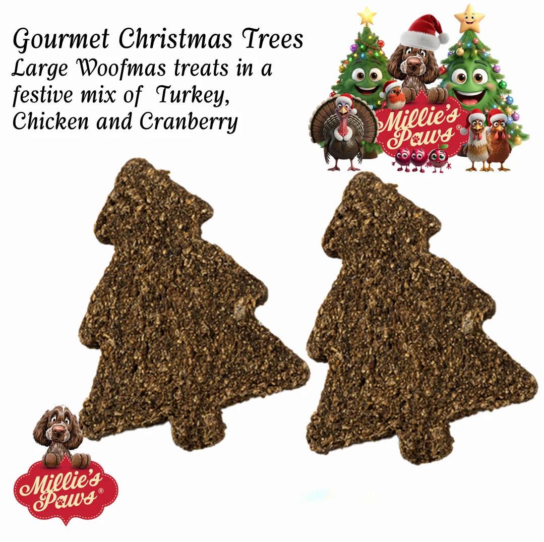 Millie’s Munchies Limited Edition Gourmet Christmas Trees Treat, a special festive feast for your pupstar , crafted from premium turkey, chicken and cranberry. These festive delights are shaped like Christmas trees and made with real, high quality meats to offer a rich, savoury flavour.