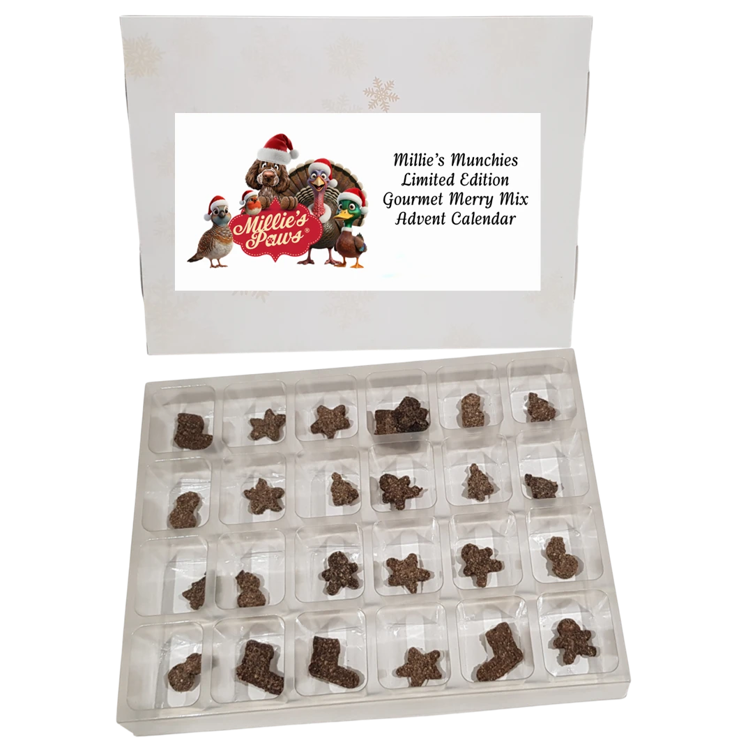 Millie’s Munchies Limited Edition Gourmet Merry Mix Advent Calendar is great festive treat in the run up to Christmas day. This calendar contains Turkey, Duck and Partridge festive shaped treats for your best friend to enjoy. Your furbaby is sure to love opening their calendar each day before Santa Paws arrives!